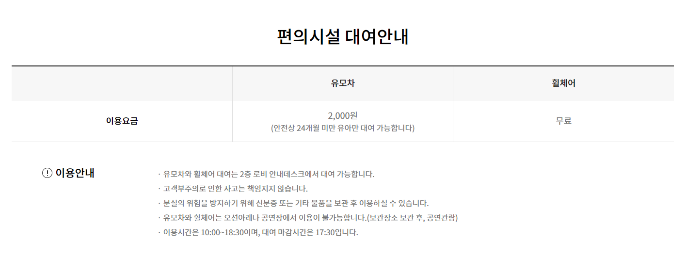 아쿠아플라넷 제주에서는 유상(2,000원)으로 유모차 대여 서비스를 하고 있습니다.