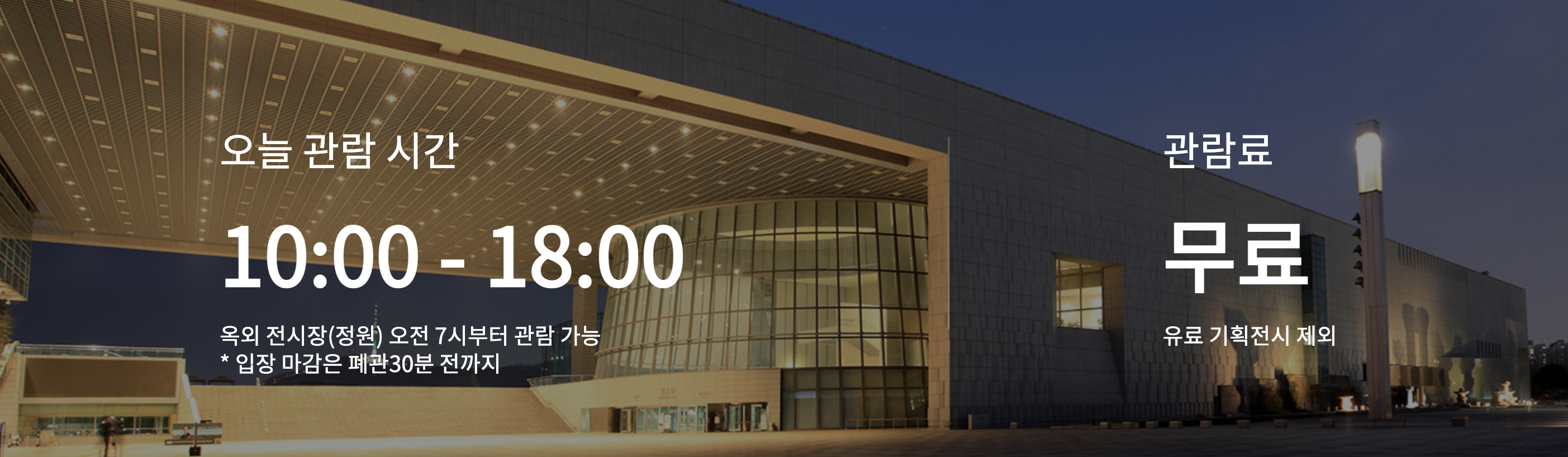 - 입장 마감은 폐관 30분 전까지입니다.