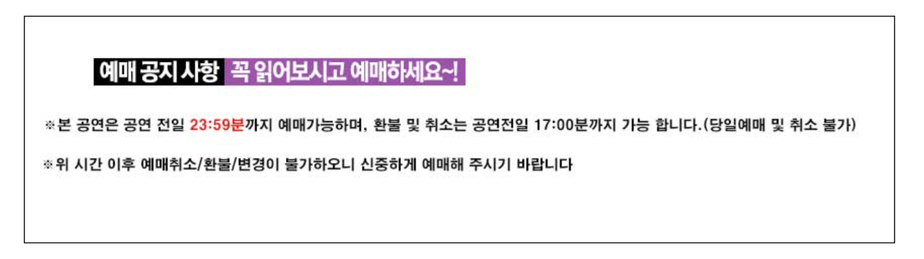 - 예매는 공연 전 날 23:59까지만 가능합니다.