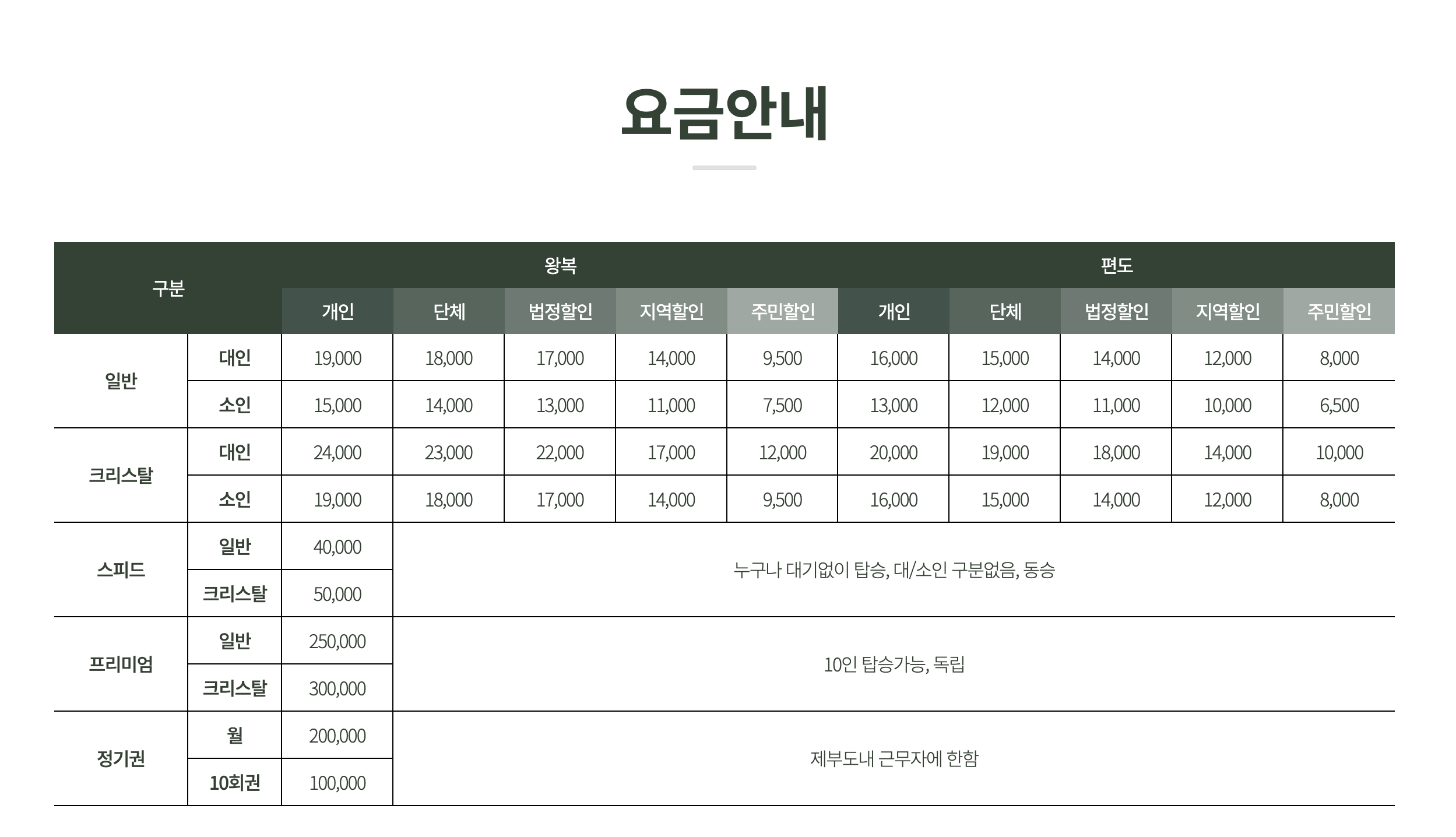 - 스피드는 다른 승객과 함께 탑승하게 되며, 프리미엄은 10인까지 일행끼리만 탑승할 수 있는 티켓입니다.